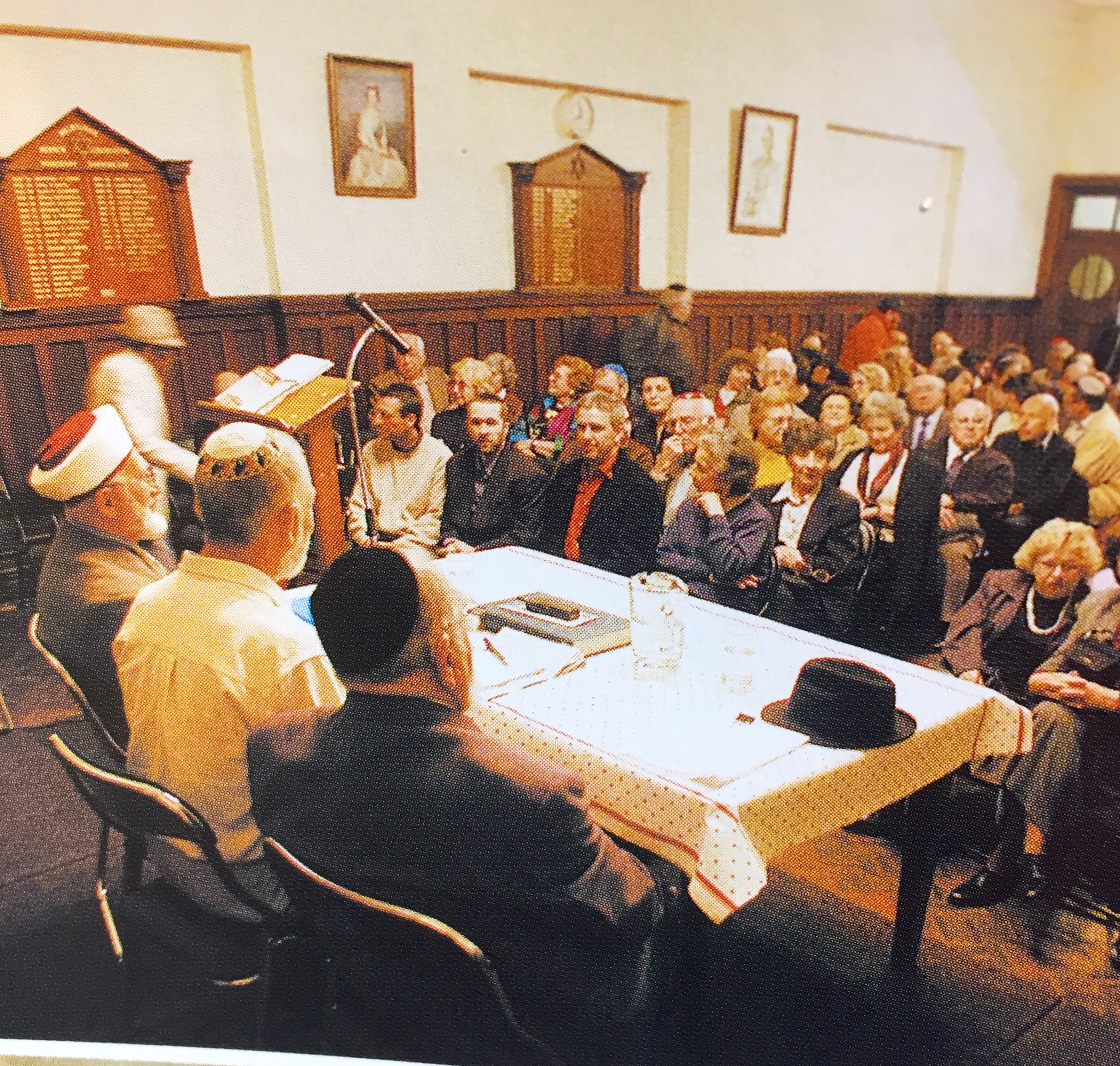 The clergy were to speak in the Social Hall. I offered to show the Sheikh the synagogue’s interior. He was interested. I found some light switches, we entered and I saw the place – a little emptier than usual – with new eyes. I took in its splendor and I sensed from the Sheikh’s reactions the Mosque in Preston was a more modest affair.