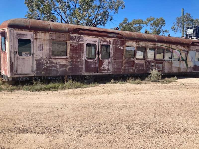 The further we drive the thicker the marks of the digger. Low structures of tin and timber alternate with mullock heaps of pale stone and earth and random bit of rusted machinery. We’ve left the bitumen behind us, dirt tracks branch off and wind off in all directions into thin scrub. I’ve lost my bearings. My companion keeps up a commentary: that claim there belongs to a friend…over here you can see cabins…the people over on the right run a really good tourist operation.