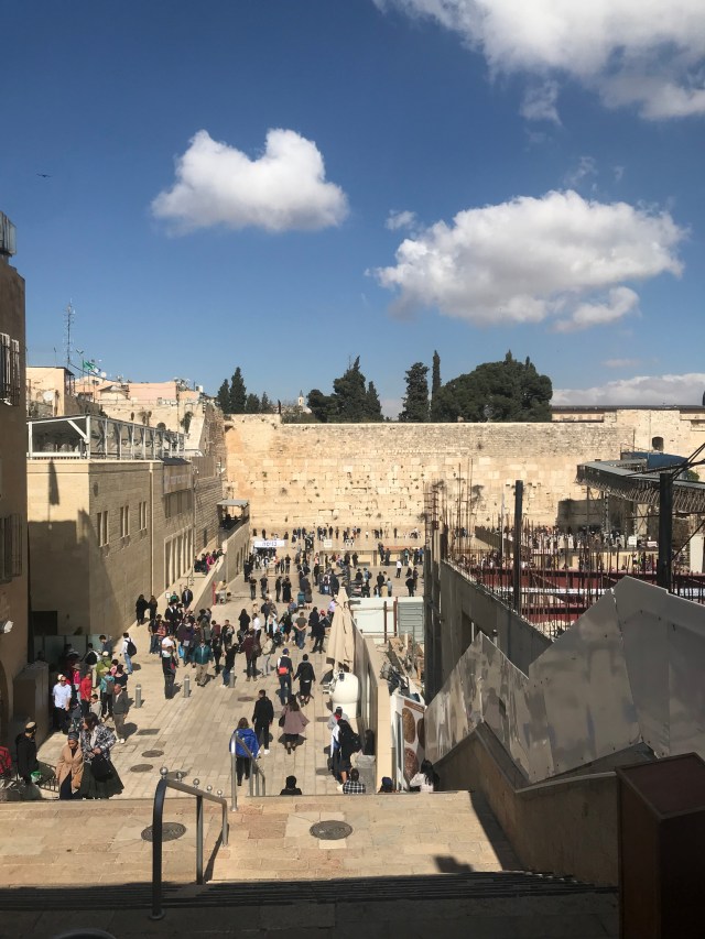 While in Israel we visited the Western Wall of the ancient Temple in Jerusalem. The Kotel, as it is known, is Jewry’s holiest site. You go up to the Kotel. Going up with me were our two recent barmitzvah graduates, a pair of happy philistines who seldom have troubled their Creator with prayer. (They don’t like to impose.) But on visiting this location the sense of occasion, of significance, falls upon all. Would the boys feel lost? I made a suggestion: There’s no fixed prayer. There’s nothing you have to say. Some say the she’ma, which is the first prayer you boys learned. Or you could think of your dearest, secret wish or feeling. You could say that at the Kotel.